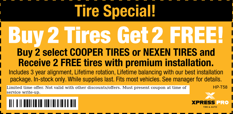 Good only atTire Special Buy 2 Tires Get Get FREE Cooper or Nexen