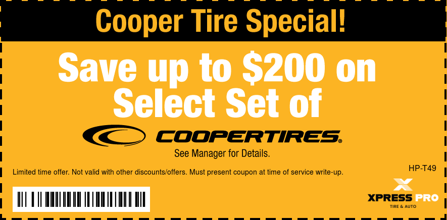 Good only atCooper Tires Save up to $200 on Select set of Cooper Tires