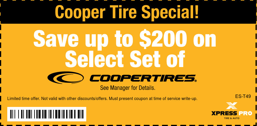 Good only atCooper Tires Save up to $200 on Select set of Cooper Tires